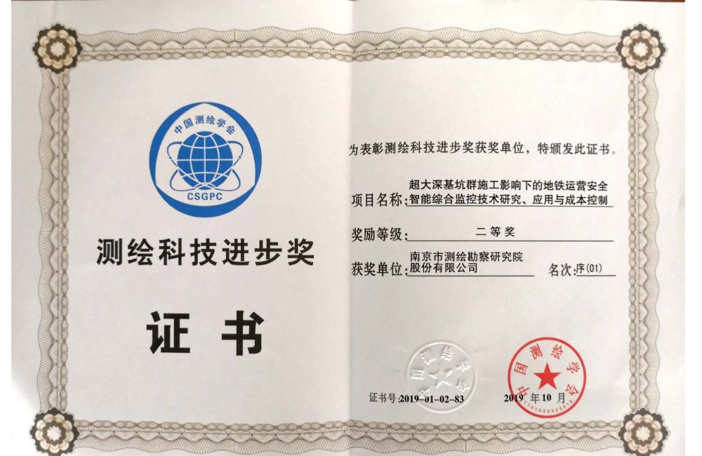 全國測繪科技進步二等獎——超大深基坑群施工影響下的地鐵運營安全智能綜合監(jiān)控技術(shù)研究、應(yīng)用與成本控制